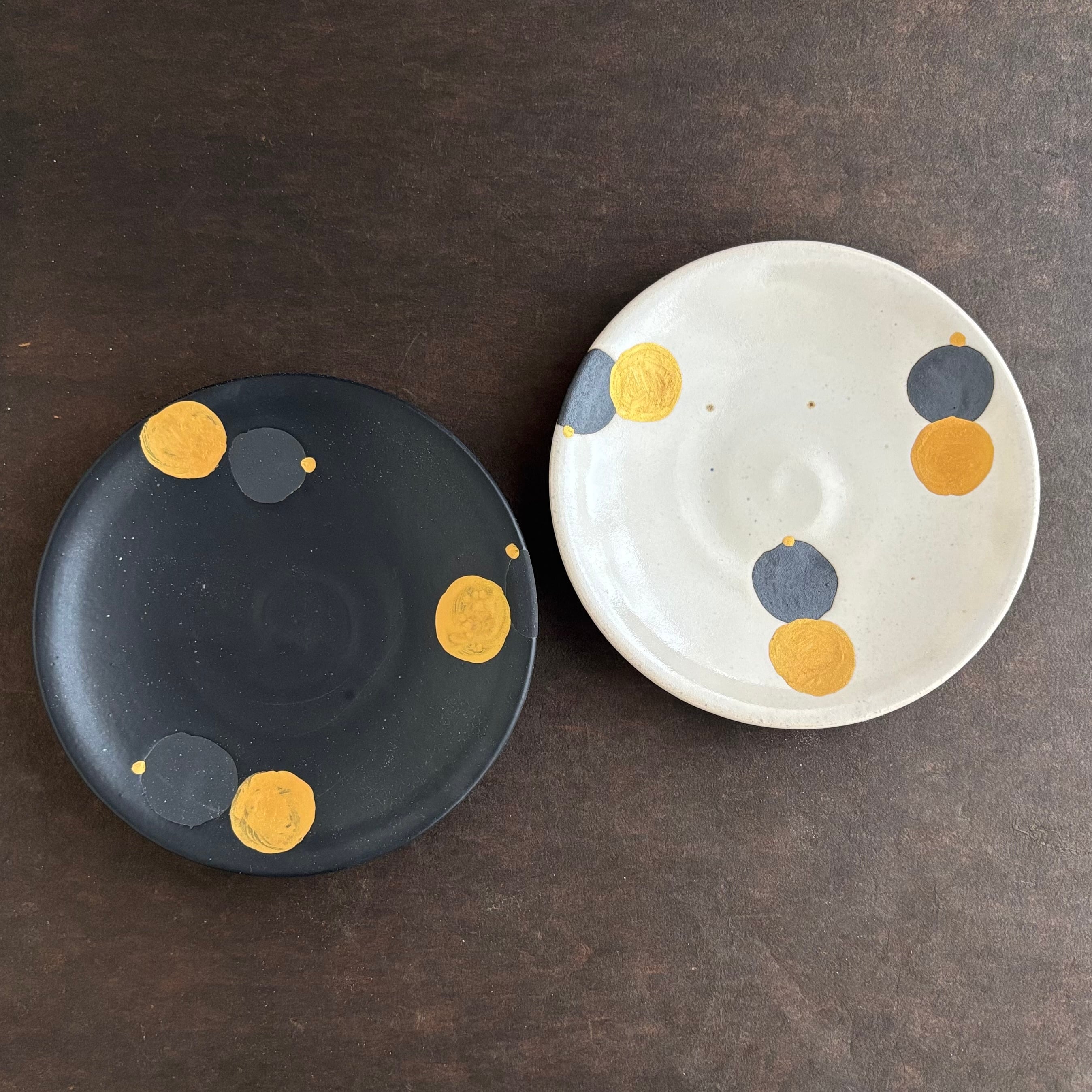 土和のルリエフ おにぎり小皿(受皿) 織部と粉引き